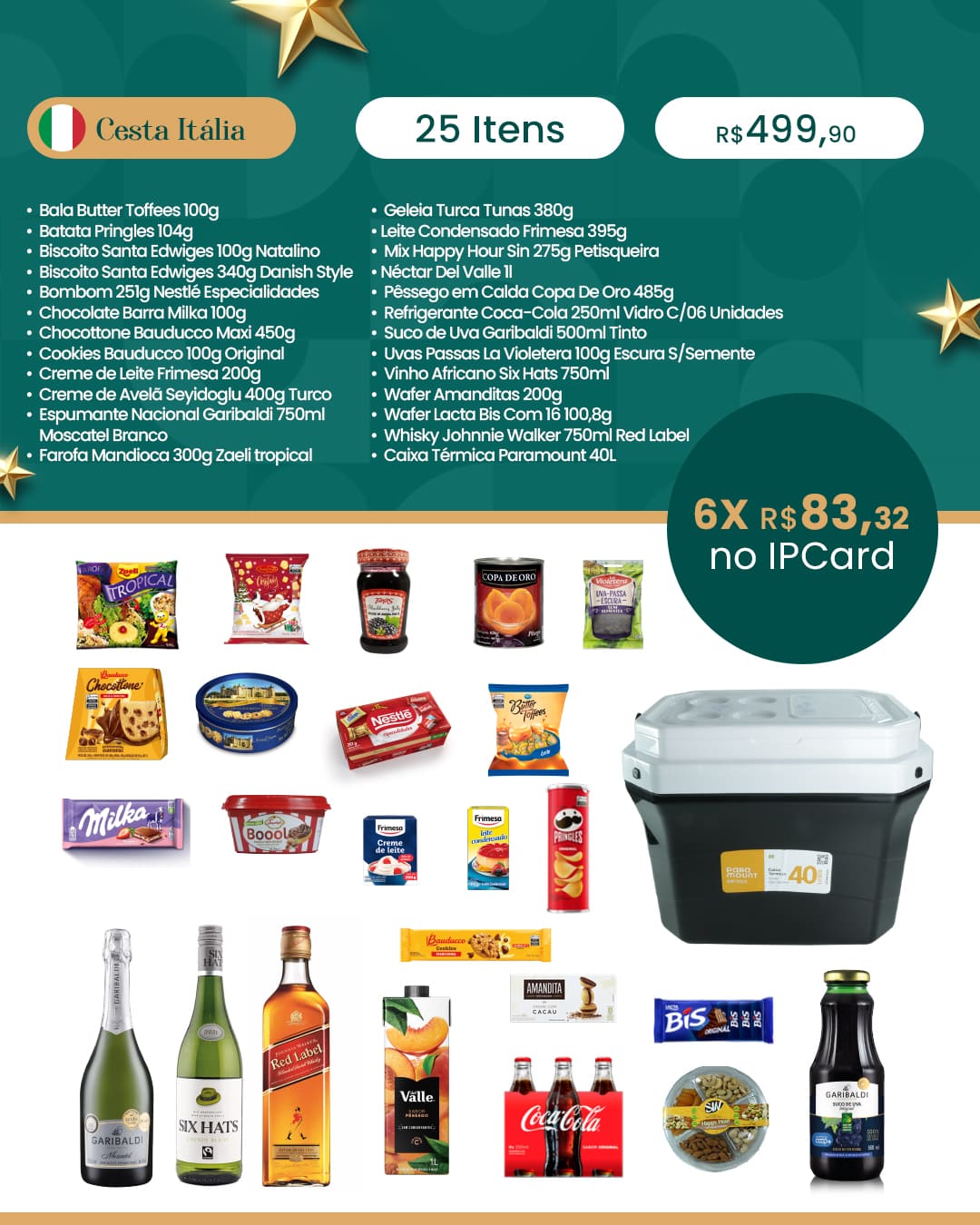 Condições especiais para empresas.Para mais informações sobre as cestas, encomendas ou orçamentos, entre em contato com o Irani através do Canal de Atendimento via WhatsApp (45) 9907-1500.